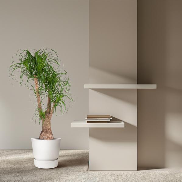 - De Beaucarnea stam heeft een stevige, brede stam die zich naar boven toe versmalt.