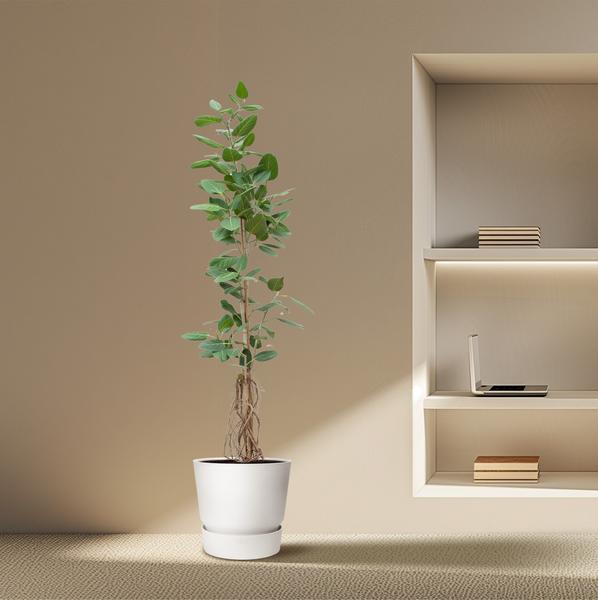 - De Ficus Benghalensis Audrey is een indrukwekkende plant met een statige stam en een weelderige, dichte kroon. De bladeren zijn groot, glanzend en diep groen, en de plant heeft karakteristieke hangende wortels die een uniek en tropisch uiterlijk geven. Deze plant kan tot 220 cm hoog worden en heeft een doorsnede van 45 cm.