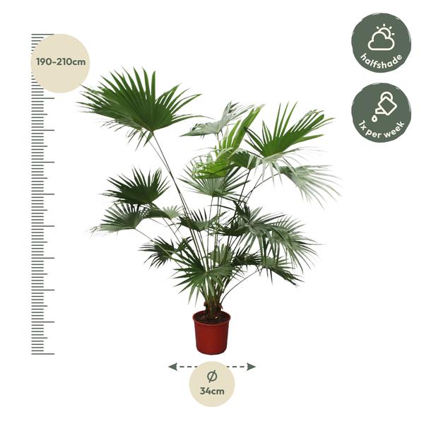 - De Livistona Chinensis houdt van een gelijkmatig vochtige grond. Zorg ervoor dat de potgrond licht vochtig blijft, maar vermijd dat er water in de pot blijft staan.