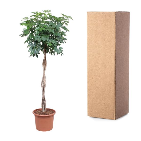 - Wij verpakken jouw producten in een stevige, speciaal voor (kamer)planten ontworpen doos. De planten en de potgrond worden beschermd door een beschermhoes. De kamerplanten worden vastgezet in de doos. Zo wordt jouw plant niet alleen vers en gezond, maar ook ongeschonden geleverd.