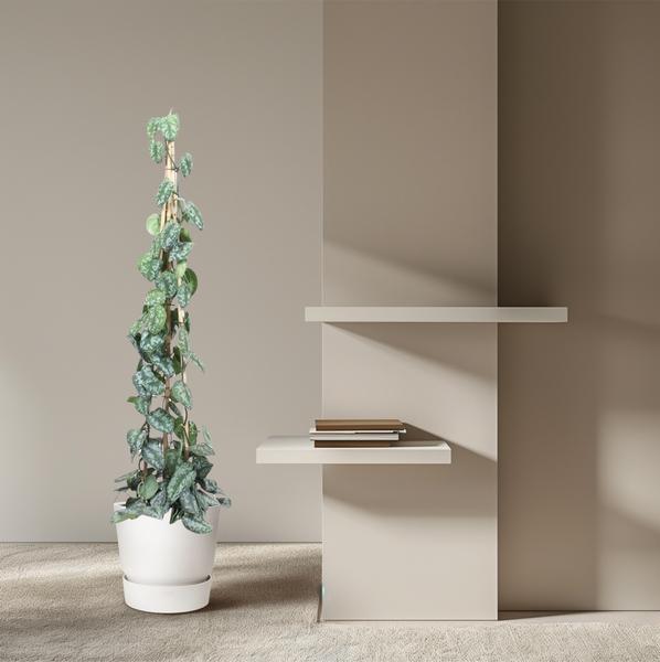 Scindapsus Pictus Trebie is een betoverende kamerplant die een vleugje weelderigheid en eigentijdse charme aan elke binnenruimte toevoegt. Met zijn opvallende, hartvormige bladeren met zilverachtige marmering, creëert deze plant direct een gevoel van tropische pracht en levendigheid. Scindapsus Pictus Trebie gedijt goed in helder indirect licht en voegt een vleugje exotisme toe aan diverse binnenomgevingen. Naast zijn esthetische aantrekkingskracht fungeert deze plant ook als een luchtzuiveraar, waardoor de kwaliteit van de leefomgeving wordt verbeterd. Met zijn gemakkelijke verzorgingseisen is deze plant perfect voor zowel beginnende als ervaren plantenliefhebbers die een stijlvolle en onderhoudsvriendelijke toevoeging aan hun leefruimte willen.